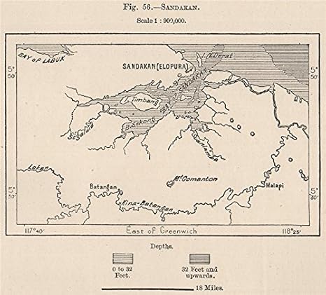 Amazon Com Sandakan Sabah Borneo Malaysia East Indies 1885 Old Map Antique Map Vintage Map Printed Maps Of Malaysia Posters Prints